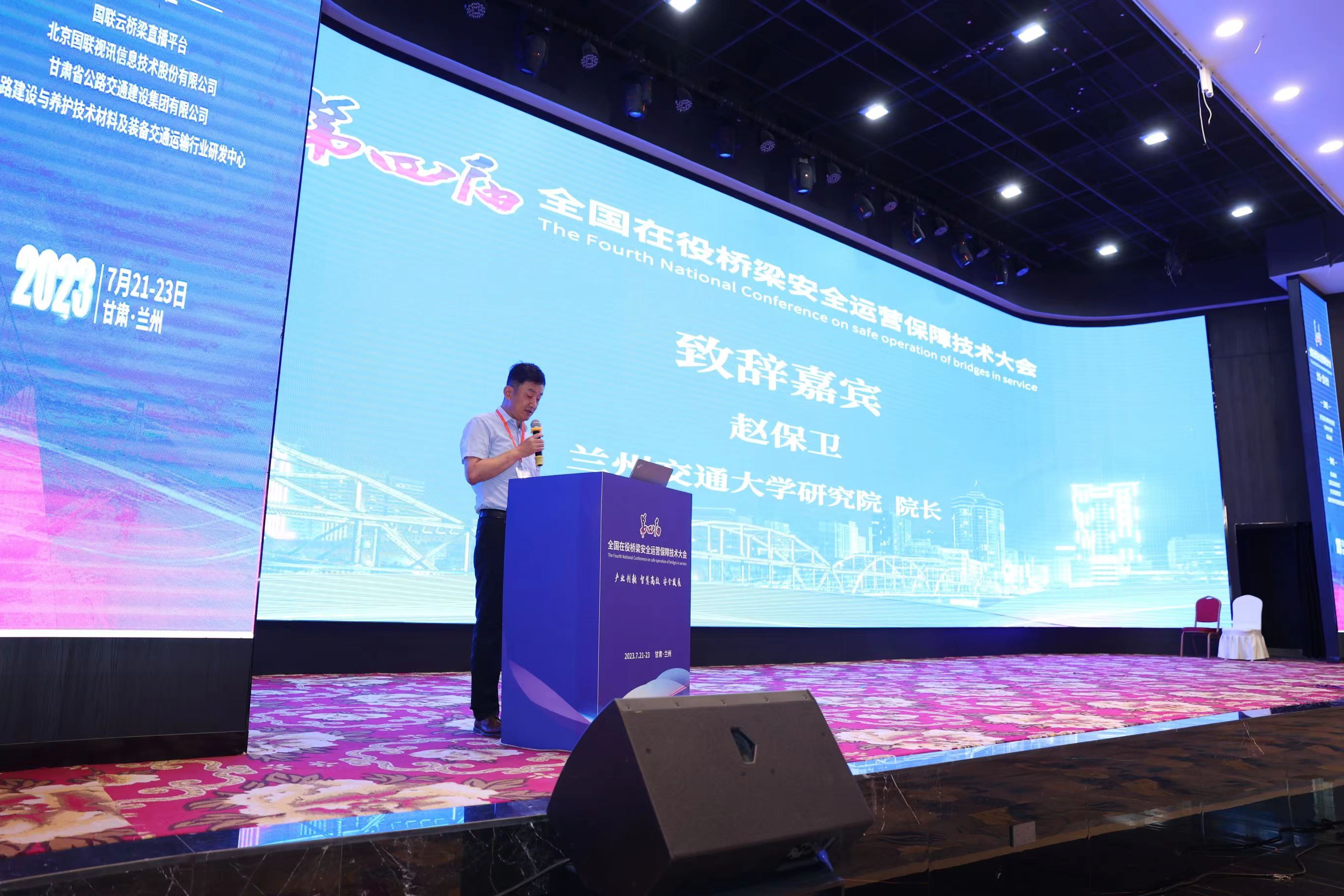 ? ? ? ?2023年7月22日,“第四届全国在役桥梁安全运营保障技术大会”在甘肃兰州成功举办。本次大会由道桥工程灾害防治技术国家地方联合工程实验室、兰州交通大学土木工程学院、桥梁工程与技术网联合主办,国联云桥梁直播平台、北京国联视讯信息技术股份有限公司、甘肃省公路交通建设集团有限公司、公路建设与养护技术材料及装备交通运输行业研发中心承办,参与议题报告的嘉宾有任伟新、赵岩波、杜镔、田启贤等专家、教授15余人,报告议题有《基于工作模态参数的在役桥梁静力性能预测》、《桥梁结构加固的理论、方法、与实践》、《基于结构振动特性的桥梁智能监控技术》等,兰州交通大学研究院院长赵保卫出席并致辞。