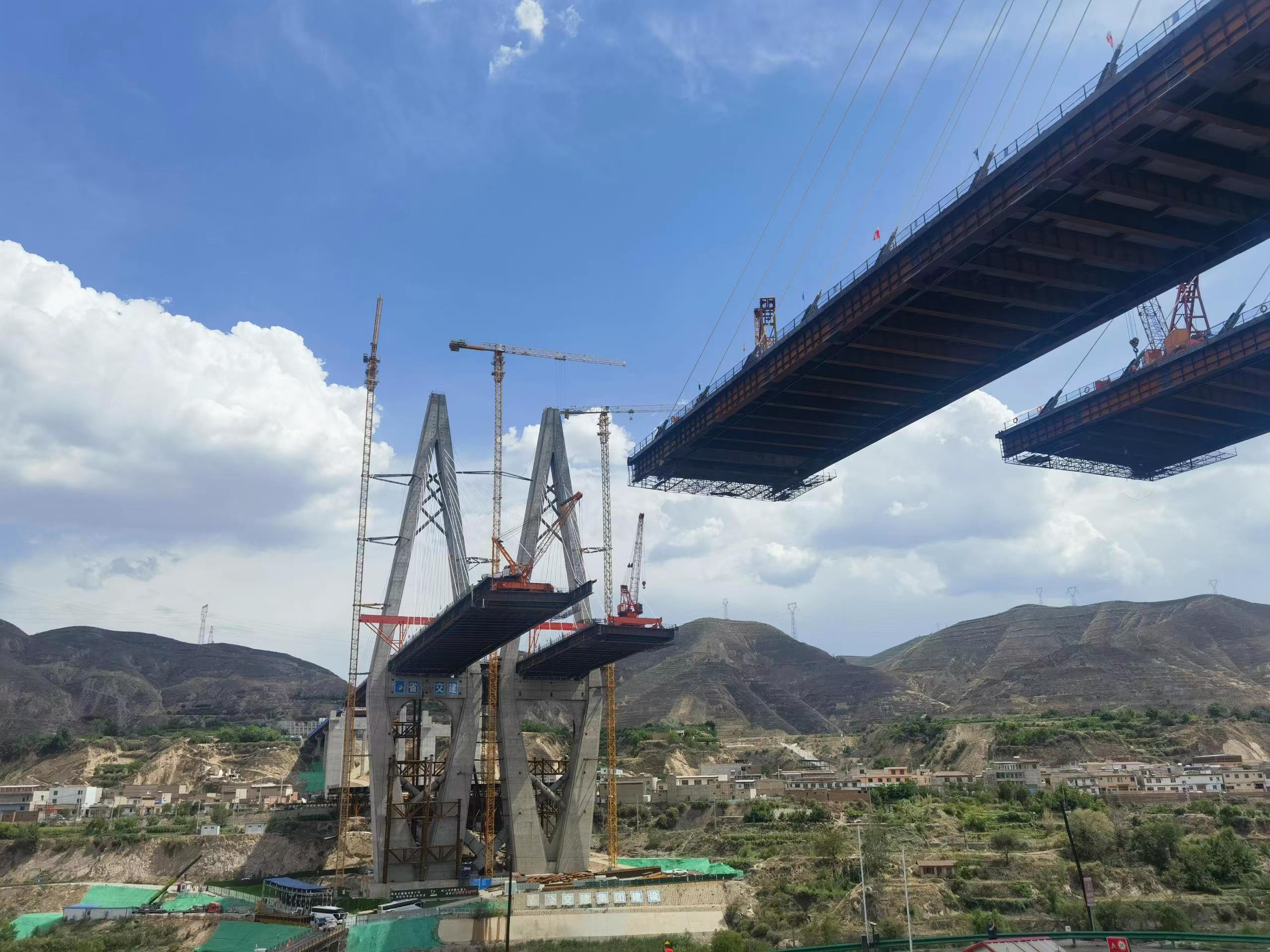 2023年7月23日下午,由主办方组织,与会人员共同参观G312线清水驿至博家窑公路工程桑园子黄河大桥,该桥梁工程属于在建阶段,结构为高震区分幅联塔岗组合梁斜拉桥。在项目组的带领下,此次主要参观了南北主塔、5G+智慧桥梁控制中心,在参观过程中,项目工程师详细讲解了项目建设情况和大桥在钢结构领域的设计、施工、管理情况,着重介绍了钢栈桥变形监测平台、桥梁全寿命健康监测系统、BIM+GIS可视化综合管理平台、公交建集团项目建设管理系统等内容。