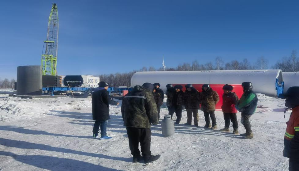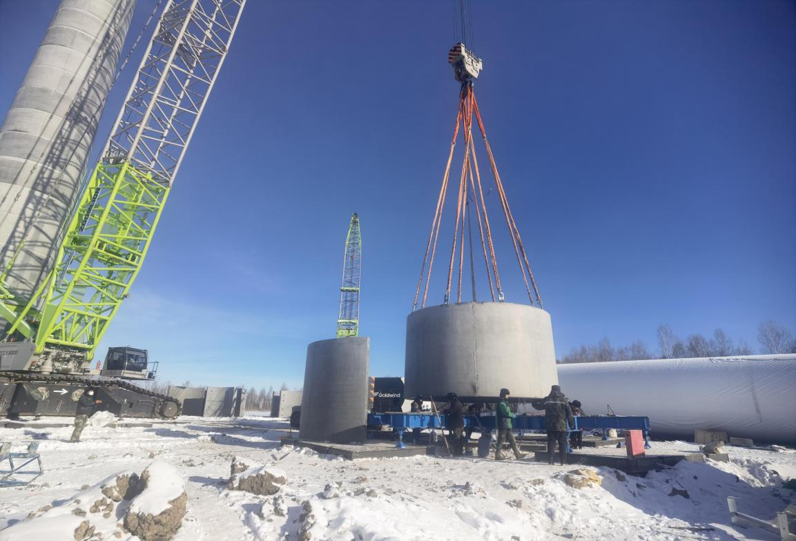 近期公司参与了黑龙江嫩江多宝山风电项目的施工,该项目位于黑龙江省嫩江市北部,属于中国最北最冷地区之一,11月中下旬当地气温在-15℃至-25℃左右,对施工中建设混凝土塔筒所用到的设备、机械及拼接材料都提出了更高的要求!