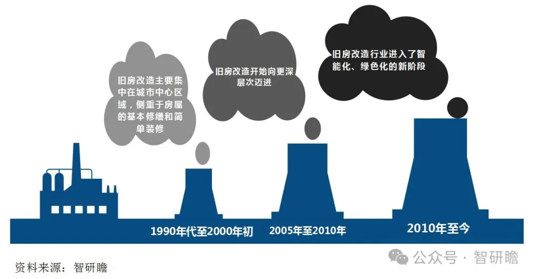 中国的旧房改造行业发展历程可以追溯到上世纪的计划经济时期,但真正大规模的发展起始于改革开放后。在1980年代,随着城市化进程的加速和居民收入水平的提高,人们开始关注居住环境的改善。然而,由于当时经济条件和技术水平有限,旧房改造活动主要集中在小规模的维修和简单的室内装修上。进入1990年代,随着中国房地产市场的启动和经济的快速发展,旧房改造行业开始逐步兴起。此时,不仅有越来越多的个人和家庭投资于自己的房屋改造,政府也开始着手进行城市老旧住宅区的改造工作,如北京的老城区改造项目等。到了2000年代初,随着城镇化战略的实施和房地产行业的蓬勃发展,旧房改造行业也迎来了新的发展机遇。政府加大了对城市旧住房区块的改造力度,不仅重视硬件设施的更新,还注重社区环境的整体提升。同时,历史文化街区的保护与利用也逐渐成为社会关注的焦点。2010年代,旧房改造行业进一步细分化和专业化,市场上出现了专门从事旧房翻新、装修设计、结构加固等的专业公司。此外,随着环保意识的提升和节能减排政策的推行,节能改造成为行业发展的新趋势。近年来,随着科技的进步和创新理念的引入,旧房改造行业开始运用智能化、绿色环保材料等新技术。同时,互联网+模式也被应用于该行业中,使得改造服务更加便捷、透明。