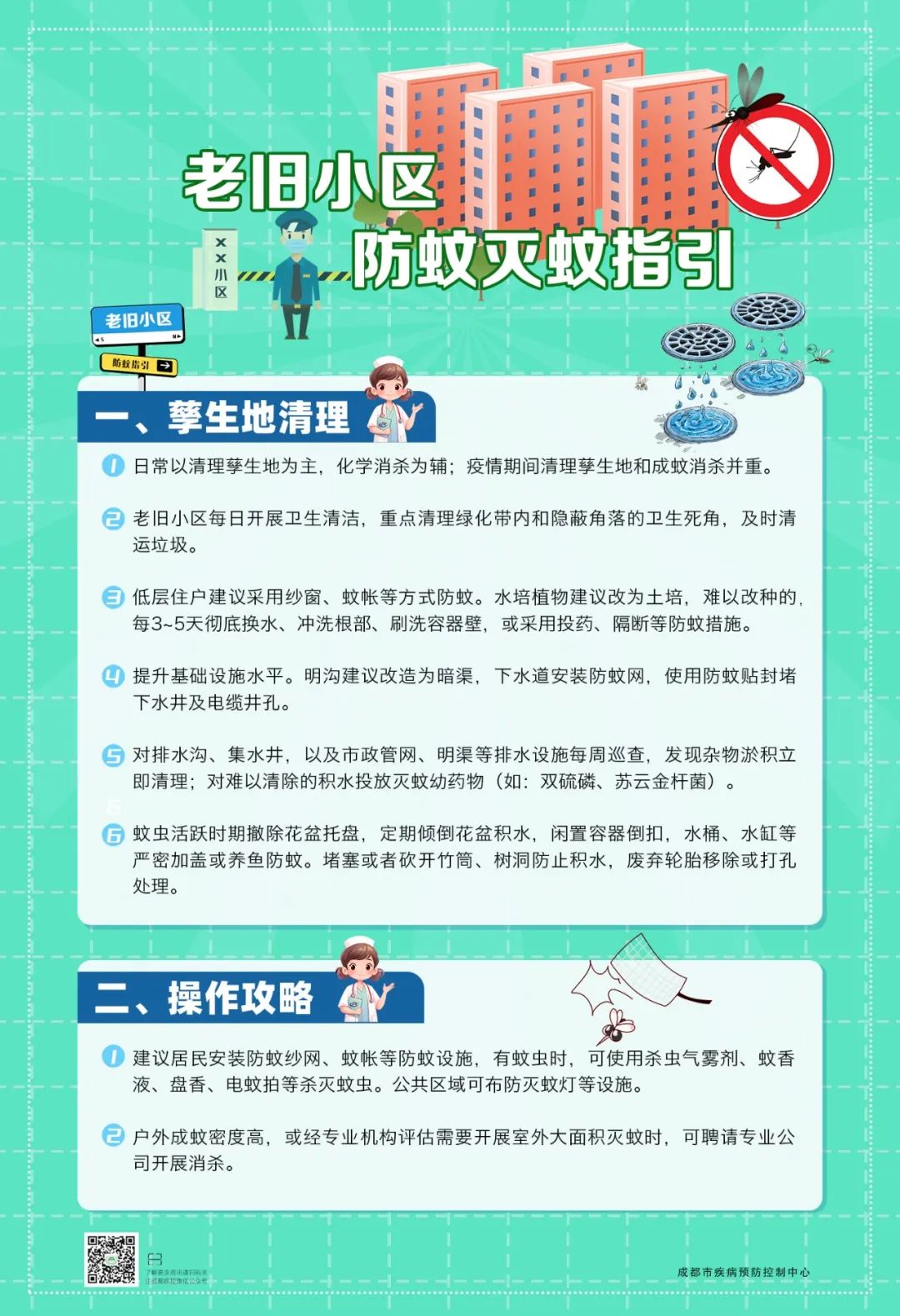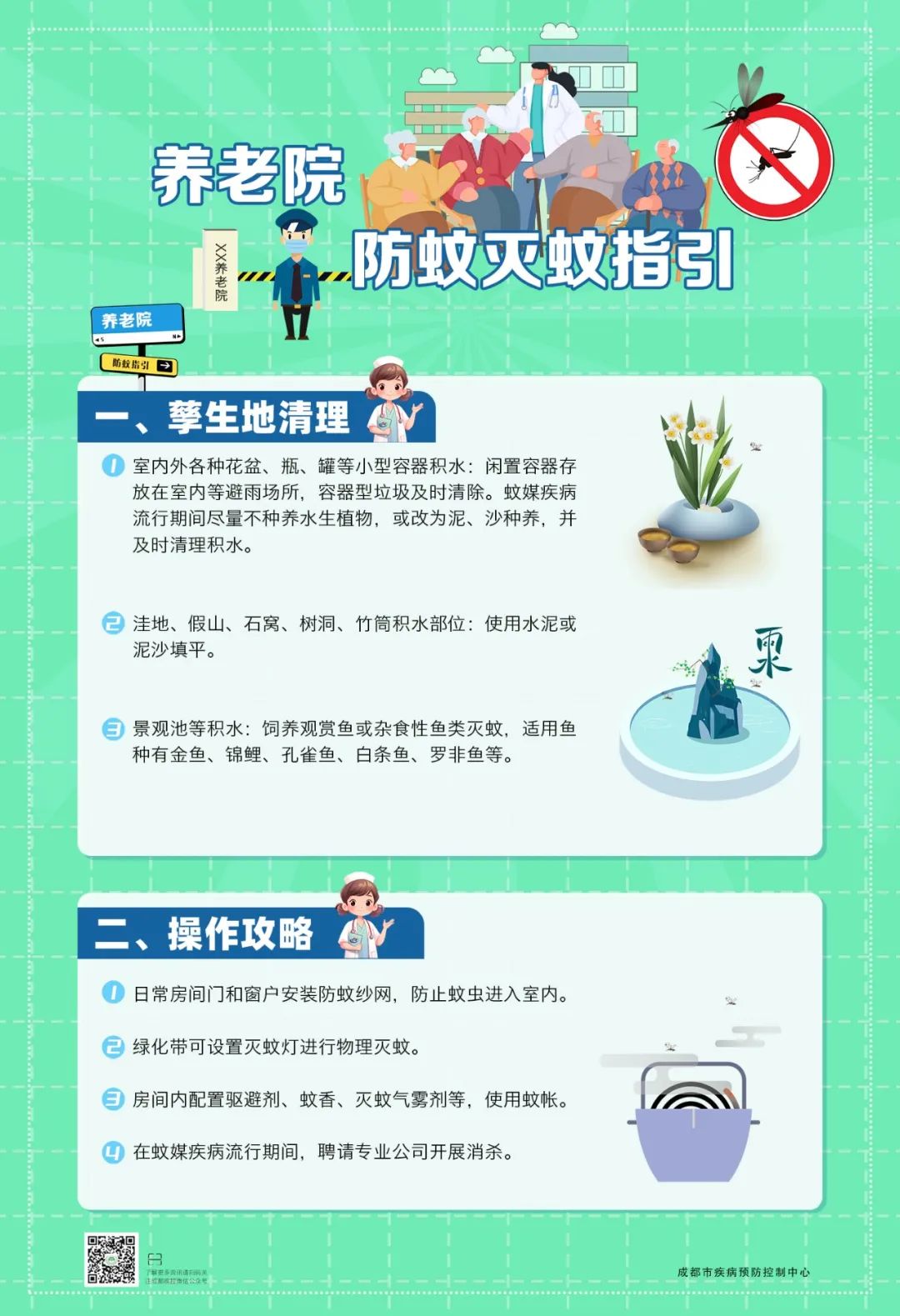 类场所,提供精准防蚊妙招。一图一场景,简单又实用,快来对照清理,共建无蚊环境!