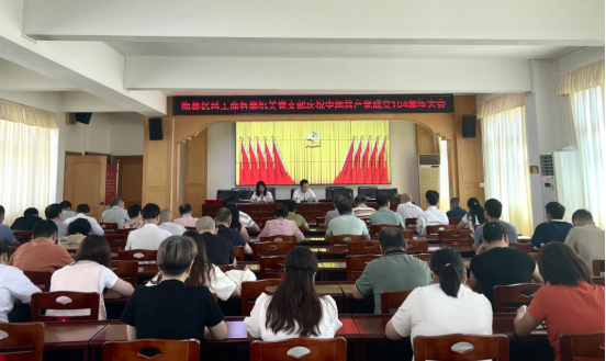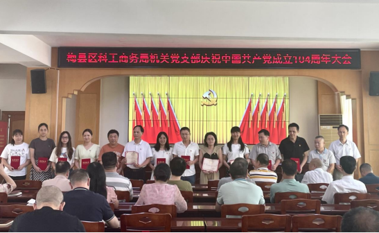 为庆祝中国共产党成立104周年,7月1日,梅县区科工商务局机关党支部组织召开庆祝中国共产党成立104大会,深入学习贯彻习近平新时代中国特色社会主义思想,弘扬伟大建党精神,扎实推进深入贯彻中央八项规定精神学习教育,通过表彰先进、树立典型,激励全局党员充分发 挥“两个作用”,为聚焦加力提速建设全省“百千万工程”典型区,推动梅县老区苏区加快振兴、共同富裕作出新的更大贡献。