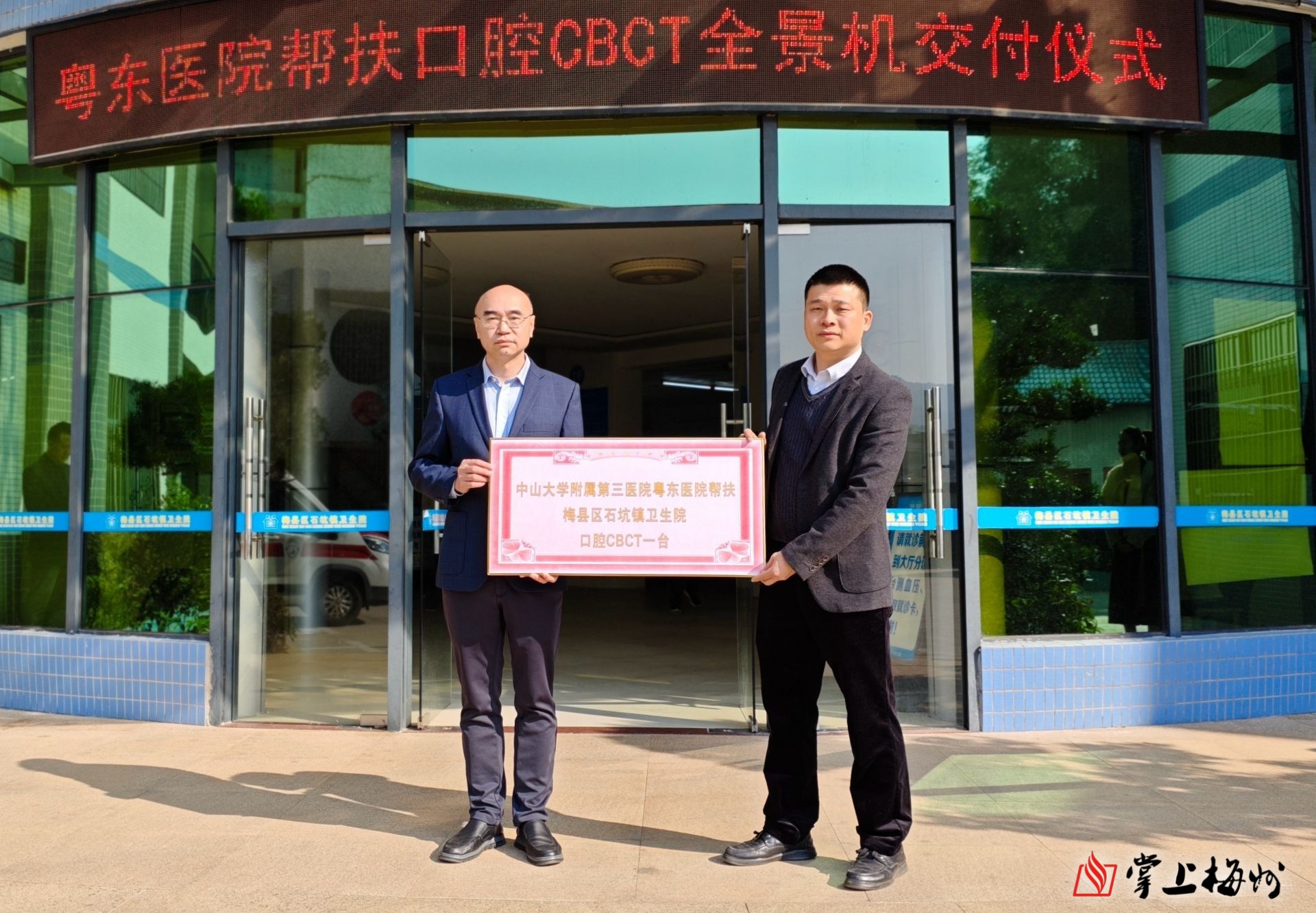 1月3日,在梅县区政府副区长彭华,梅县区卫生健康局、梅县石坑镇党委、政府相关负责人的见证下,中山大学附属第三医院粤东医院(以下简称“粤东医院”)正式将一台口腔CBCT全景机交付梅县区石坑镇卫生院使用。