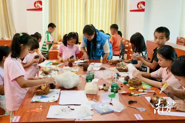 石坑镇社工站联合杨化村、澄江村、澄中村、蓝坑村、转水潭居委等5个村(居),开展“小小创变家”儿童手工活动,旨在通过知识讲解和让儿童利用卡纸、彩泥、木枝、草絮、棉花等环保材料手工制作各种小鸟、鸟巢及过滤器的实践结合方式,引导儿童关注鸟类保护,激发环保意识,在他们心中植下热爱自然、保护环境的绿色种子。寓教于乐的形式,极大激发儿童主动性,活动现场,孩子们积极参与,制作、展示自己的手工作品,并主动分享心得与感受。