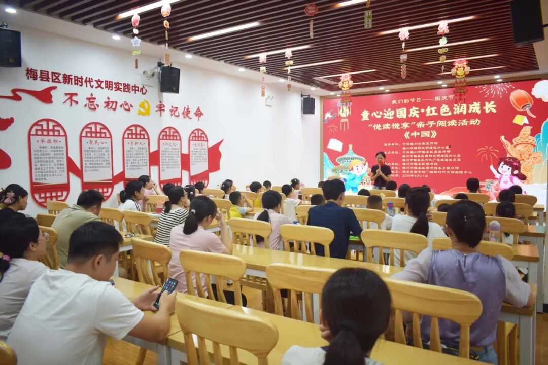 9月27日下午,梅县区图书馆一楼新时代文明实践中心热闹非凡,25组5-8岁亲子家庭齐聚一堂,开启红色亲子阅读之旅。