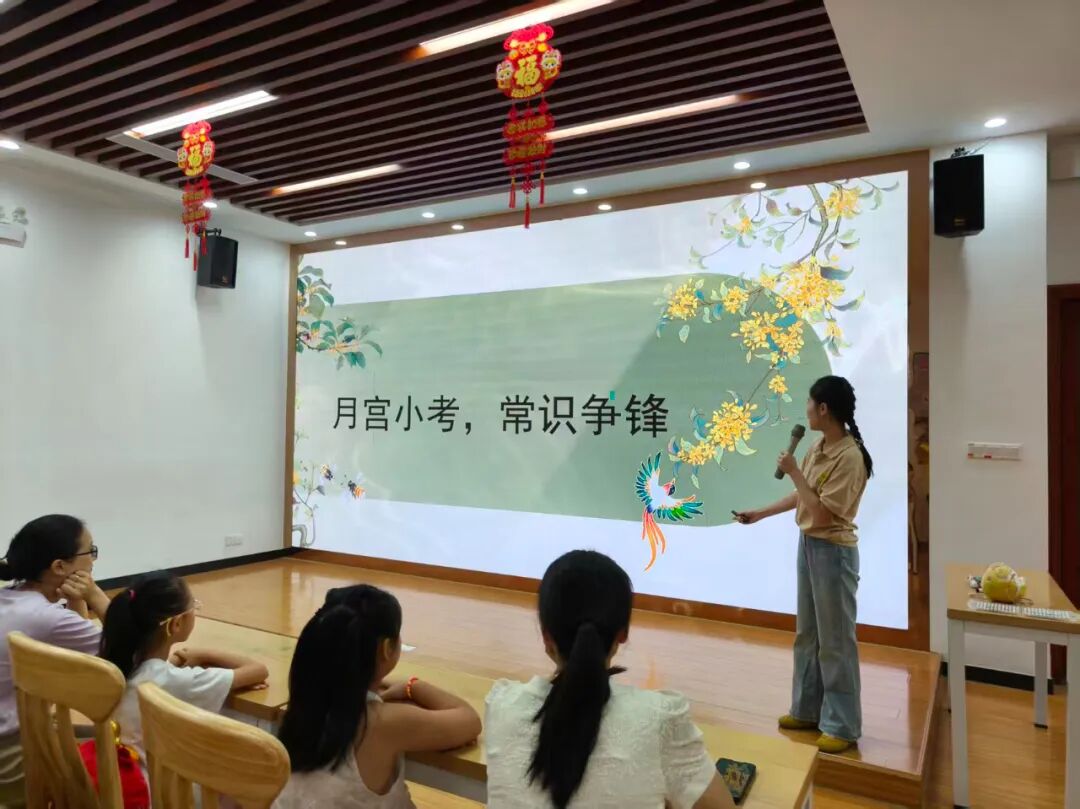 10月1日上午,“柚” 见中秋?点亮团圆亲子阅读手工活动在一楼新时代文明实践中心温馨启幕。活动伊始,老师为孩子们分享月亮主题绘本,带他们了解中秋由来、感受月亮的浪漫意趣;绘本结束后,趣味知识闯关随即展开,“中秋有哪些别称?”“月亮上有哪些神话?” 孩子们纷纷举起小手抢答,现场满是欢快热烈的氛围。